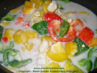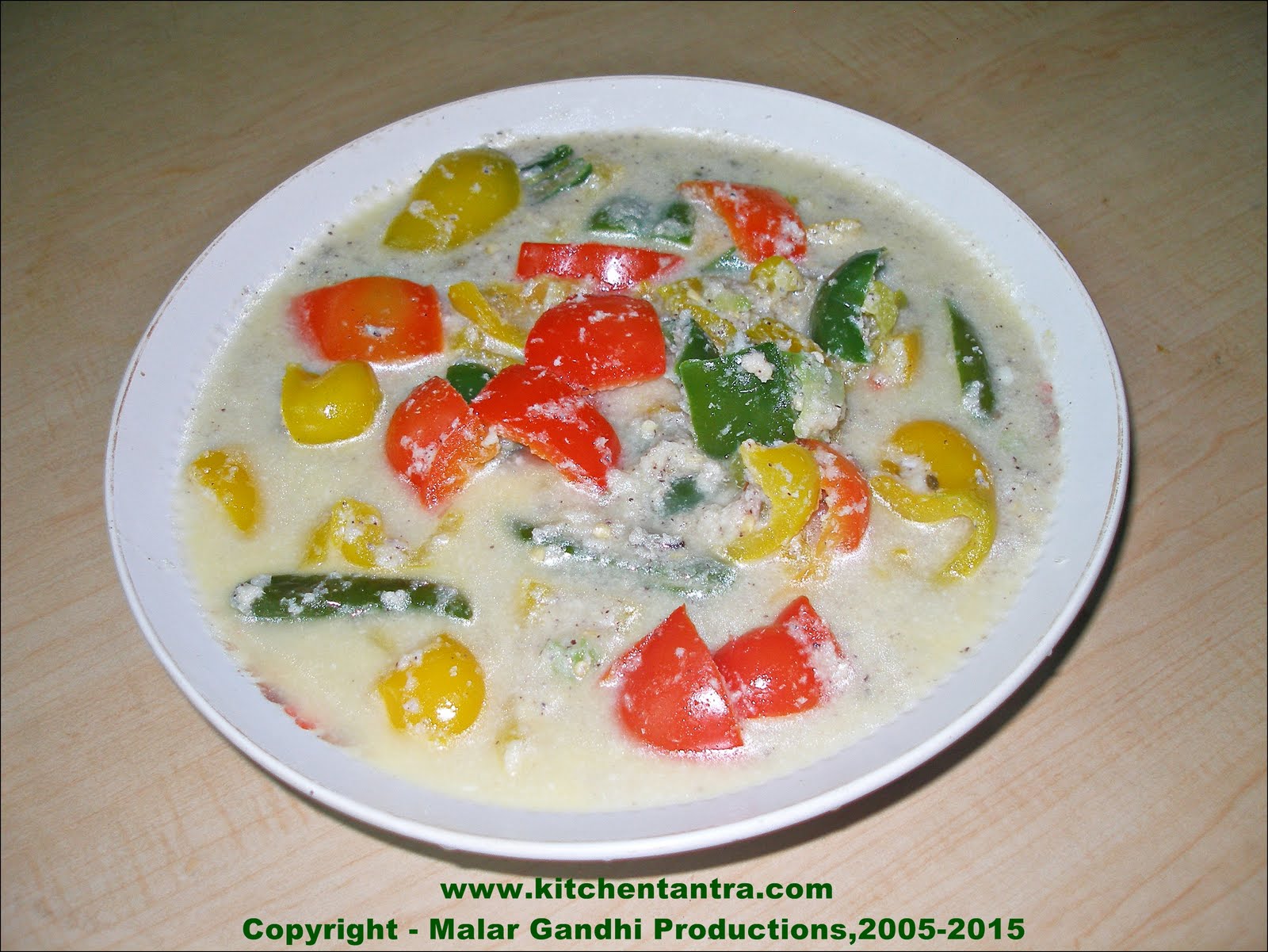 Other Names: Rainbow Kurma. Capsicum Paaya. Capsicum Korma. Kudai Milagai Kurma. Simla Mirchi Qorma. Colored Peppers in Coconut Curry.