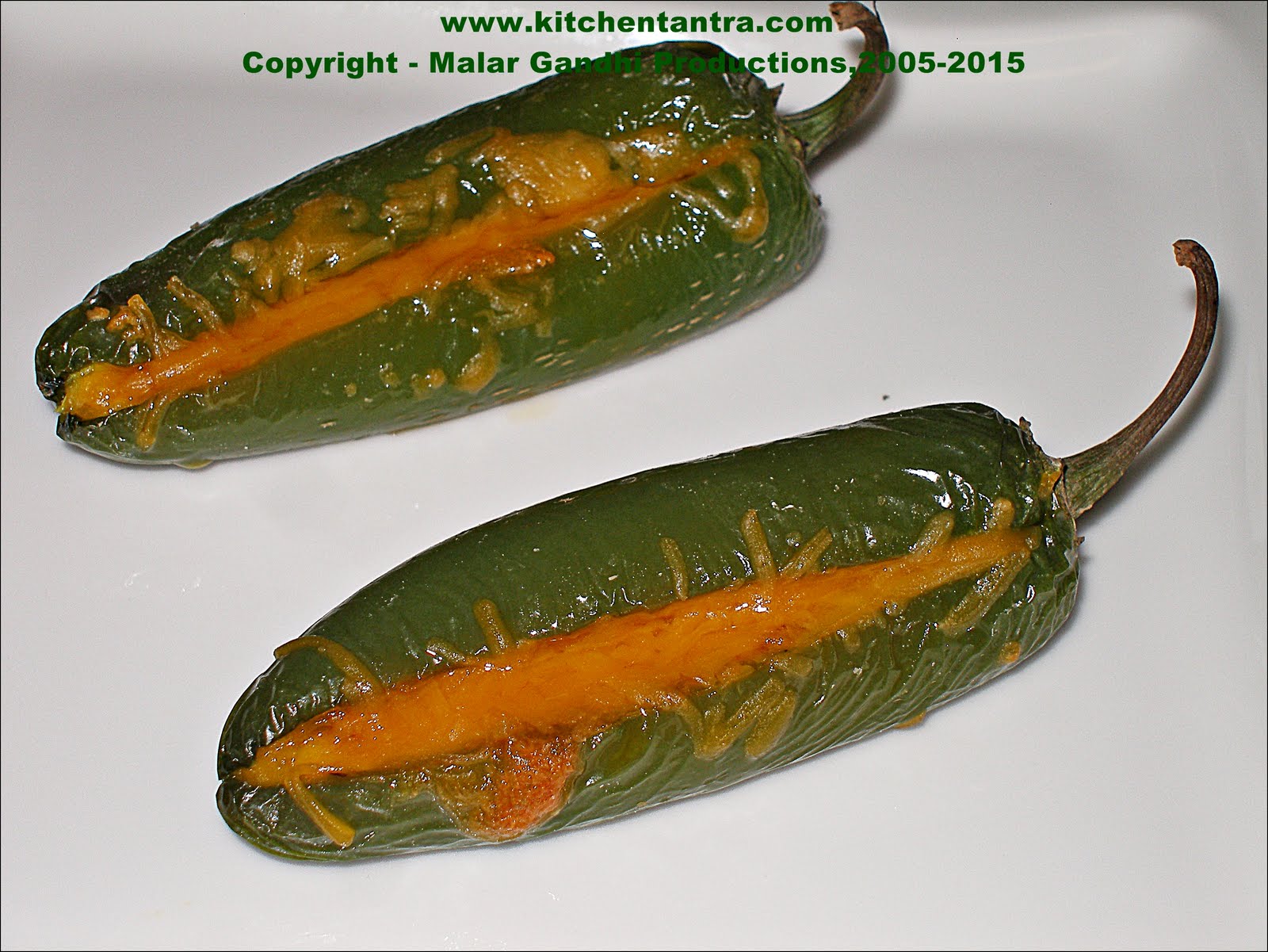 Fill the jalapenos with cheese, bake them over 350 for 7-10 minutes, there you go…spicy snack ready:)