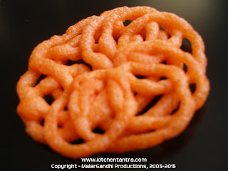 I have been wanting to make this sweet’ for a very long time. Hmmmm, it was bit tricky to make that perfect swirl. As a teenager, my very first attempt to make jangiri at home was a complete disaster. The resulted dish, made my Mom’s job easier (Yeah, I gave up experimenting sweets altogether after that). Anyhow, after several years, I gathered up some kind of guts to try this again. Guess, I did fairly decent. Though, I couldn’t perfect it, but its kind of okay with taste and I am glad that I tried.:)