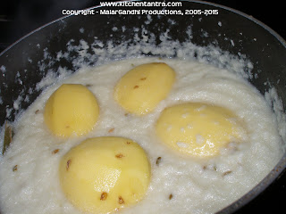 I used ghee for tempering the spices. I cooked the potatoes in the gravy directly, like our dhum aloo.:)