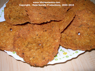 This is much similar to Anumaar Kovil Vadai. I have already posted Anumaar Kovil Prasaad. (Where the vadai is much moist and made with the Urad Batter). This is given as Prashaad in JallaGandeswarer Temple, Vellore Fort.(The only difference is, they use powdered urad dal). It could be stored for longer period.