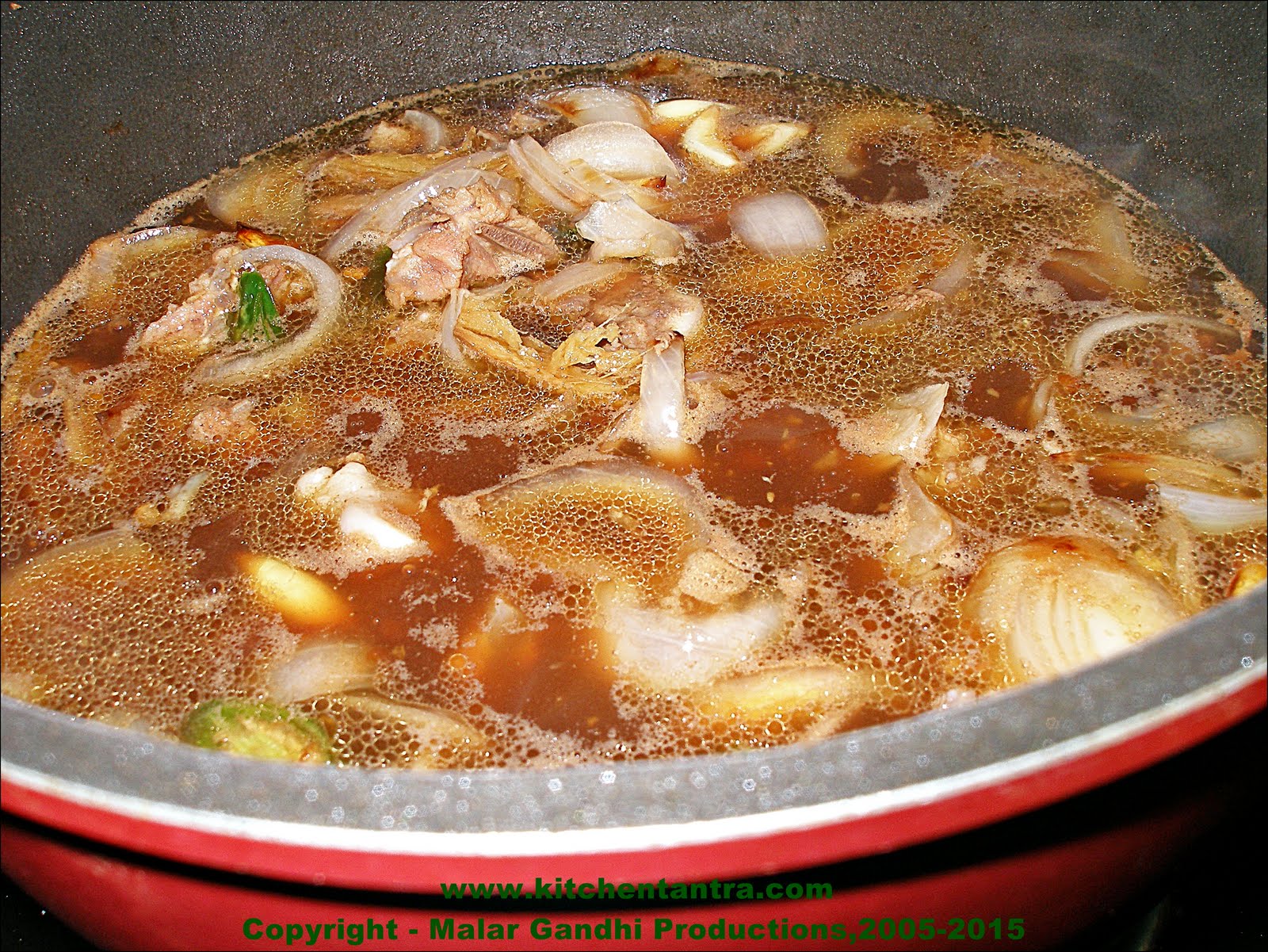 Other Names: Goat’s meat and Spring onions Soup. Iraichi-Vengaya thaal Soup.
